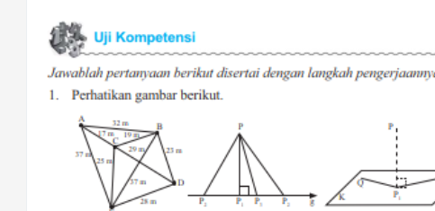 1. Perhatikan gambar berikut. a. Dari Gambar (a), tentukan jarak dari titik A ke D. b. Dari Gambar (b), tentukan jarak titik P terhadap garis g. c. Dari Gambar (c), tentukan jarak titik P pada bidang-K. Hallo temen temen selamat datang di blog ilmu edukasi, blog ilmu edukasi berisikan kunci Jawaban buku pelajaran MI SD, SMP, MTS, SMA, SMK, MA, MAK Pasti dapat nilai 100